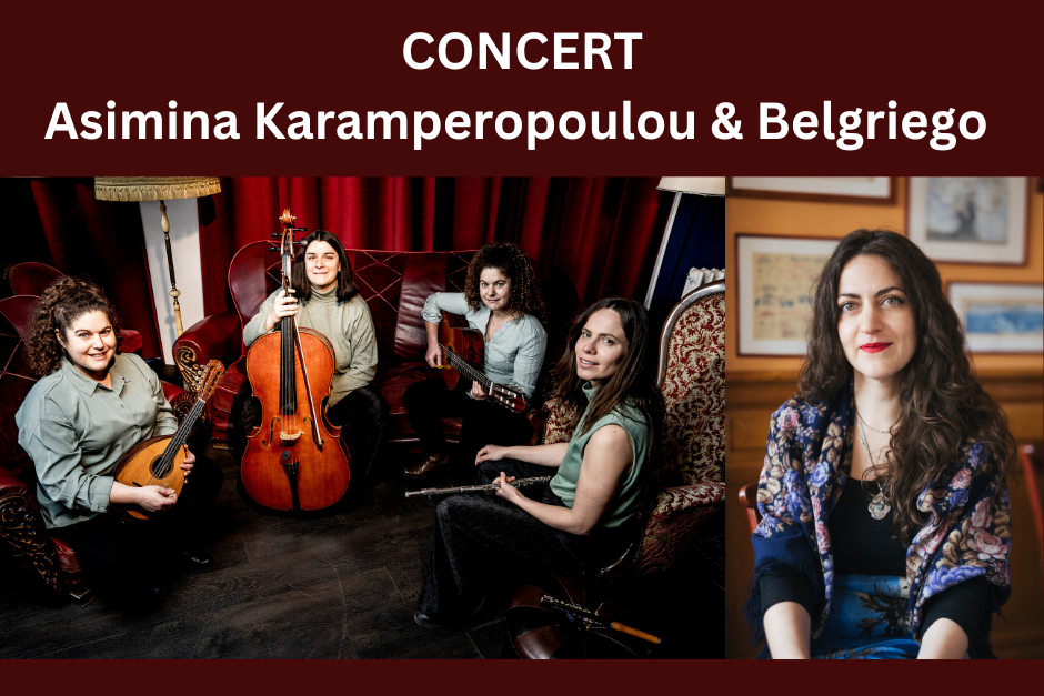 Η ορχήστρα Belgriego και η Ασημίνα Καραμπεροπούλου θα παρουσιάσουν μια συναυλία με τραγούδια από την Ελλάδα και το ευρύτερο μουσικό τοπίο της Μεσογείου.