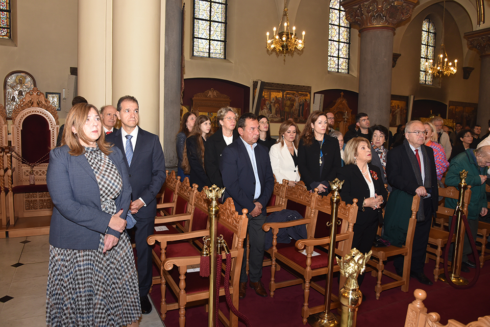 Στην πανήγυρη παρέστη πλήθος πιστών, μεταξύ των οποίων η Μόνιμη Αντιπρόσωπος της Ελλάδας στο ΝΑΤΟ, πρέσβης Βασιλική Γούναρη, ο αναπληρωτής της, πρέσβης Γάσπαρης Βλαχάκης, ο πρώην πρέσβης Διονύσιος Καλαμβρέζος, ο επικεφαλής της Γραμματείας της Ελληνικής Πρεσβείας στο Βέλγιο Γεώργιος Παπαδάτος, η Συντονίστρια Εκπαίδευσης Αμαλία Καψάλα, καθώς και ο στρατηγός Νικόλαος Φλάρης, στρατιωτικός αντιπρόσωπος της Ελλάδας στο ΝΑΤΟ/SHAPE, με συνοδεία αξιωματικών. Παρόντες ήταν επίσης Άρχοντες του Οικουμενικού Πατριαρχείου και εκπρόσωποι ομογενειακών φορέων των Βρυξελλών.