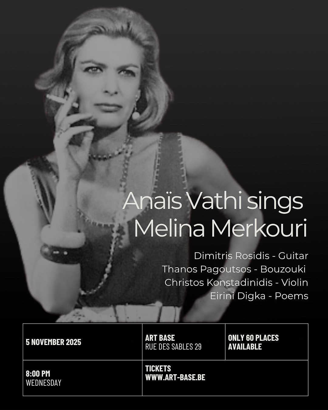 Η παράσταση θα πραγματοποιηθεί την Τετάρτη 5 Νοεμβρίου 2025, στις 8:00 το βράδυ, στον ζεστό και φιλόξενο χώρο του Art Base (Rue des Sables 29, Βρυξέλλες).