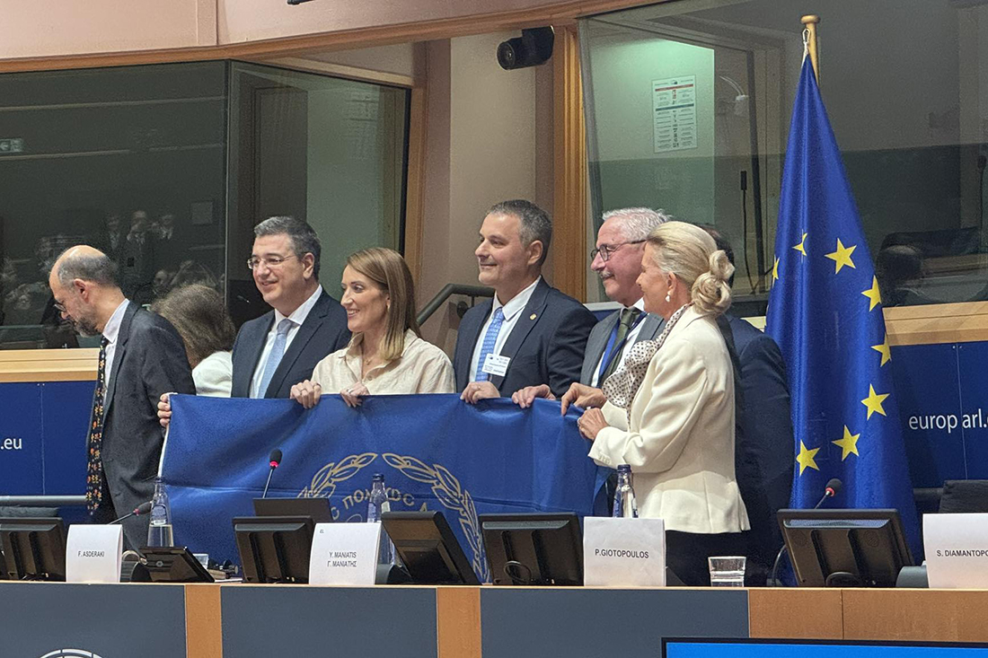 Au cours de la cérémonie, la Présidente du Parlement européen, Roberta Metsola, a été honorée par le maire de Missolonghi, Spyros Diamantopoulos, qui lui a remis le drapeau officiel de la ville ainsi qu’une édition collector de l’hymne national grec. M. Diamantopoulos a souligné « l’occasion unique de faire entendre la voix de Missolonghi depuis le cœur de l’Europe vers le reste du monde », rappelant que l’Exode fut un événement déterminant qui mobilisa les Philhellènes et transforma la perception européenne de la Révolution grecque.