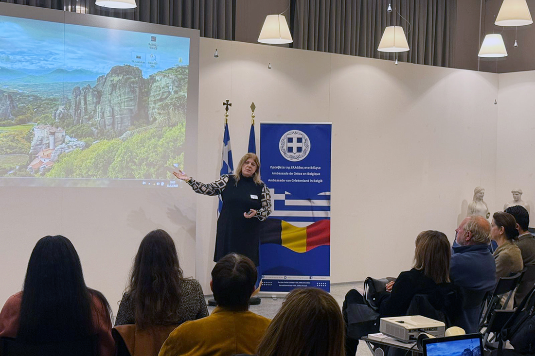 La soirée a débuté par une allocution de l’Ambassadrice de Grèce en Belgique, Mme Sofia Grammata, qui a souligné l’importance de renforcer la coopération touristique entre la Grèce et la Belgique. Elle a été suivie par l’intervention de Mme Anastasia Adamopoulou, vice-gouverneure régionale chargée du tourisme en Thessalie, qui a présenté de manière globale la diversité et le potentiel du produit touristique régional. Mme Nicoletta Nikolopoulou, directrice du bureau EOT Benelux, a ensuite mis en avant les atouts compétitifs de la Thessalie et ses perspectives de développement touristique.