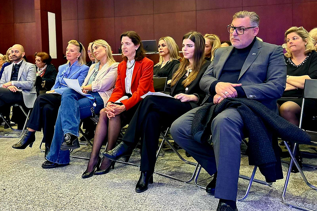 Ακολούθησε ομιλία της Προέδρου κας Κωνσταντίας Μεταξάκη με θέμα «Εκατό χρόνια ιστορίας, προσφοράς και κοινωνικής ευθύνης: Η διαδρομή και το έργο της Αδελφότητας Ελληνίδων Κυριών Βρυξελλών». Η κα Μεταξάκη τόνισε τη σημασία της Αδελφότητας ως οικογένειας και θεσμού, που στηρίζει την ελληνική κοινότητα και ενισχύει την παρουσία των γυναικών στη Διασπορά, επισημαίνοντας την αξία της αλληλεγγύης, της συμμετοχής και της προσφοράς για τη διατήρηση της κοινότητας ζωντανής εδώ και 100 χρόνια.