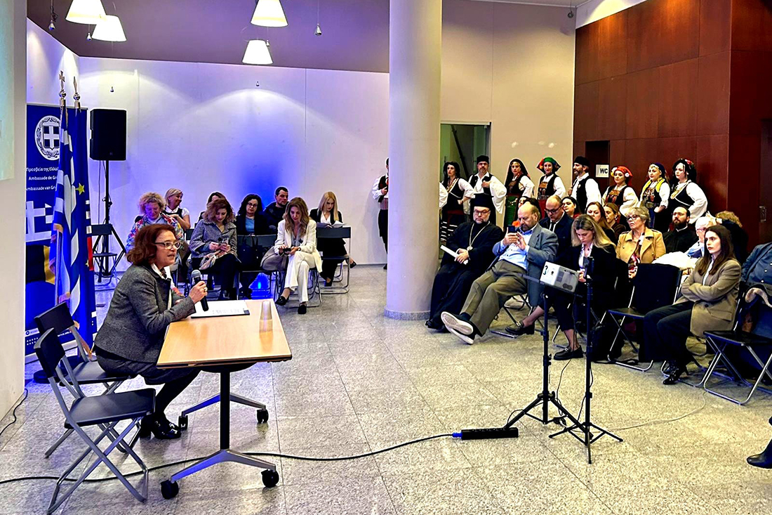 Στο πλαίσιο της εκδήλωσης πραγματοποιήθηκε ομιλία της ταμία κας Μαρίας-Ωραιοζήλης Κουτσουπιά, αφιερωμένη στη μεγάλη ελληνίδα ιστορικό Ελένη Γλύκατζη-Αρβελέρ. Παράλληλα, η κα Λίτσα Κάτσα Τομαρά, Πρόεδρος του Λυκείου Ελληνίδων Βρυξελλών, διάβασε ένα ειδικά γραμμένο από εκείνη αφιέρωμα για την αποστολή της Ελληνίδας στη Διασπορά, ενώ στη συνέχεια η χορευτική ομάδα του Λυκείου Ελληνίδων παρουσίασε παραδοσιακούς ελληνικούς χορούς. Η ενέργεια και το κέφι τους ήταν μεταδοτικά, σηκώνοντας όλο το κοινό όρθιο, το οποίο συμμετείχε με ενθουσιασμό στους χορούς, γεμίζοντας την αίθουσα ζωντάνια και χαρά.