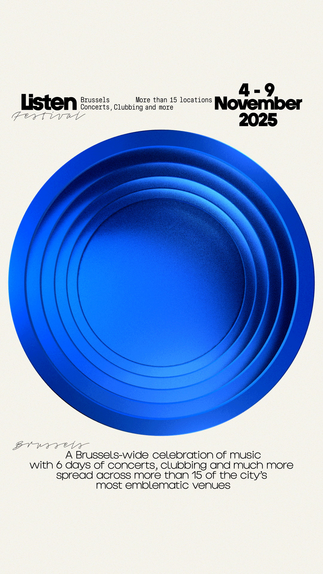 Η ένατη έκδοση του Listen Festival θα μεταμορφώσει τις Βρυξέλλες σε έναν απέραντο μουσικό χάρτη, από τις 4 έως τις 9 Νοεμβρίου, με 23 εκδηλώσεις σε 15 εμβληματικούς χώρους της πόλης. Από τη μεγαλοπρεπή Βασιλική του Koekelberg μέχρι το Botanique, αλλά και τα θρυλικά club Fuse και C12, το φεστιβάλ θα φιλοξενήσει πάνω από 120 καλλιτέχνες της διεθνούς ηλεκτρονικής και εναλλακτικής σκηνής.